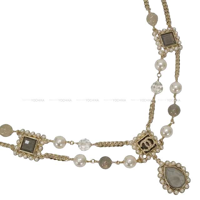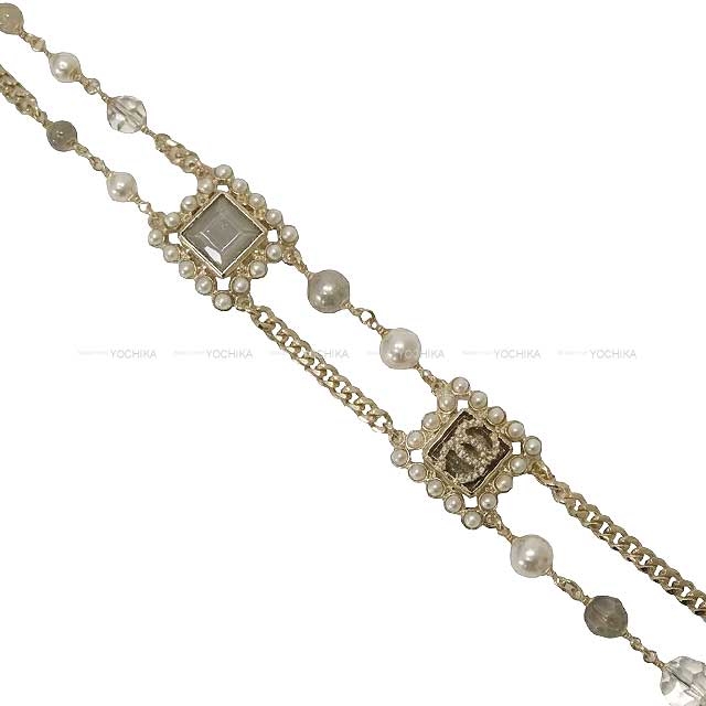 | CHANEL シャネル ネックレス ロング チェーン ココマーク スクエア ランダム シャンパンゴールド ゴールドプレーテッド/カラーストーン/イミテーションパール シャンパンゴールド金具 C21B 新品未使用 |