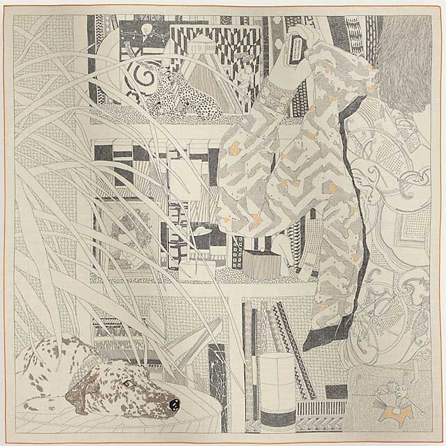 | HERMES scarf Carre 140 Rendez-Vous Chez Hermes Naturel/Graphite/Jaune d'Or Cashmere70% / Silk30%[BRAND NEW][Authentic] |