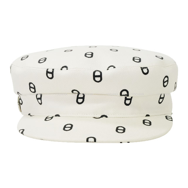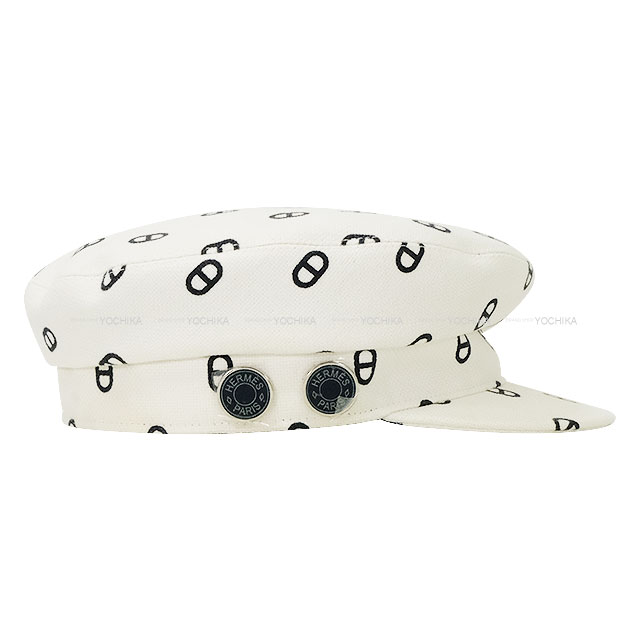 2023年春夏 HERMES エルメス キャスケット シェーヌダンクル ヴォーバン ソルド品 #57 白 (ホワイト)/黒 (ブラック) コットン 新品同様【中古】