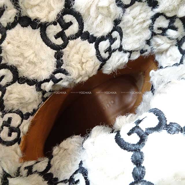 | 2023SS GUCCI boots Short GG-Pattern Ankle Noir (Black)/Blanc (White) Calf/Shearing #38.5 719826[EXCELLENT][Authentic] |