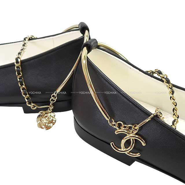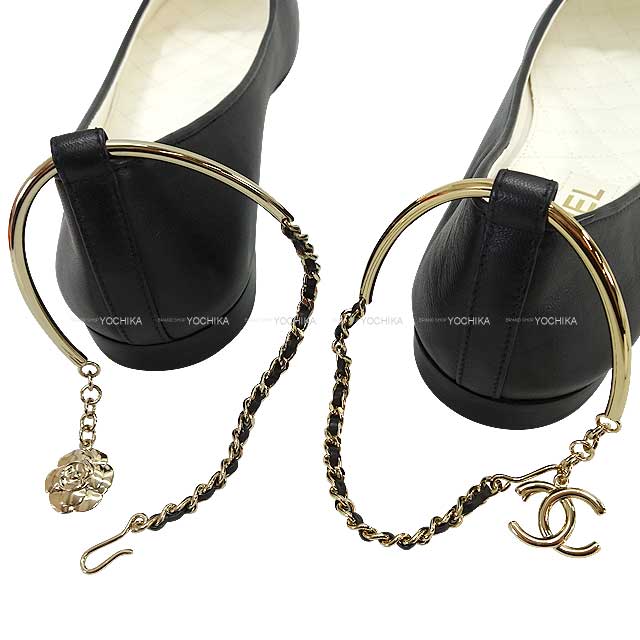 | 2022SS CHANEL ballet shoes(flat shoes) COCO Mark Flat Matelasse Camellia Noir (Black) Calf #39 Champagne Gold HW G38986[ALMOST NEW][Authentic] |