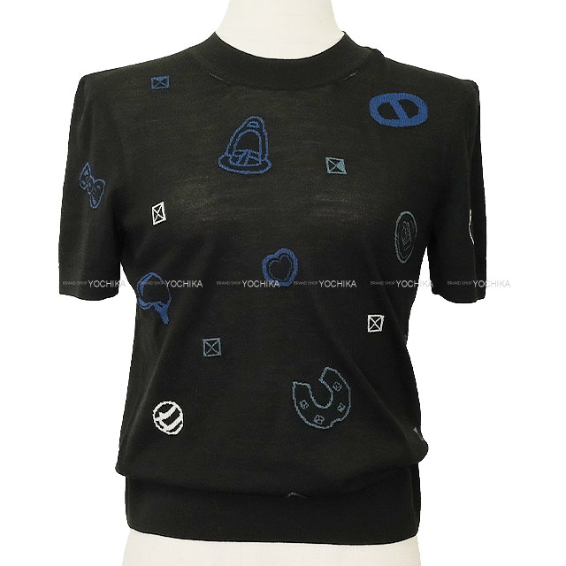 | 2025 AW HERMES Knit Short Sleeve Candy Libris Motif Noir (Black) Wool/Nylon/Polyurethane 5H2635D3[BRAND NEW][Authentic] |