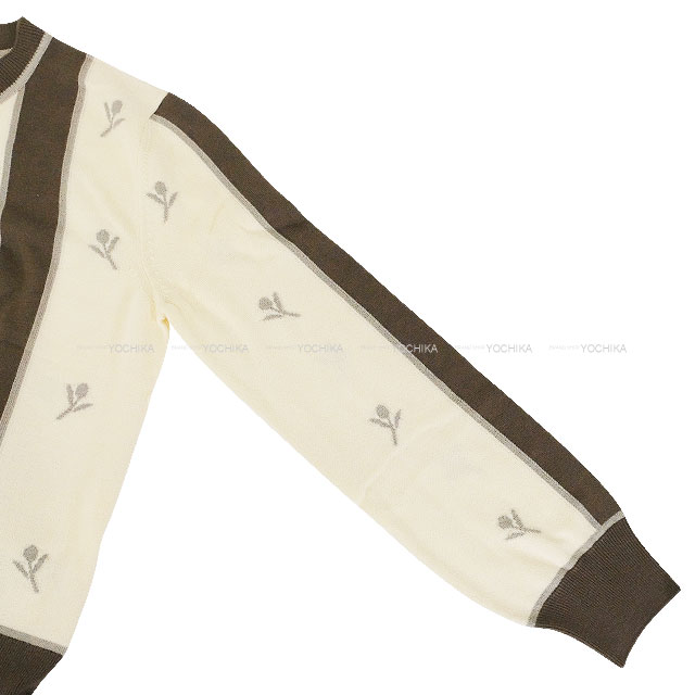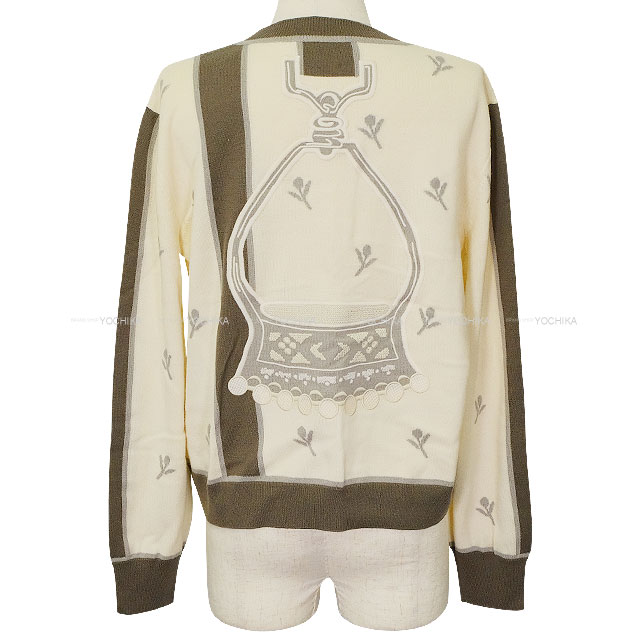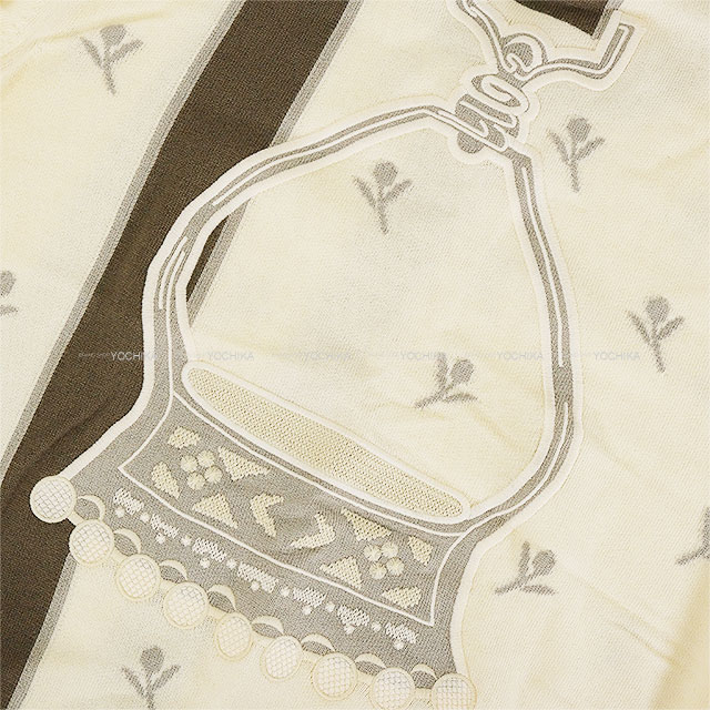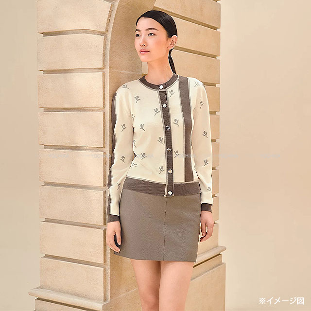 | 2023AW HERMES Cardigan ETRIERS Embroidery Serie Button Ivory/Brown/Grey Wool/Cashmere/Polyamide Silver HW 4E2722D5[EXCELLENT][Authentic] |