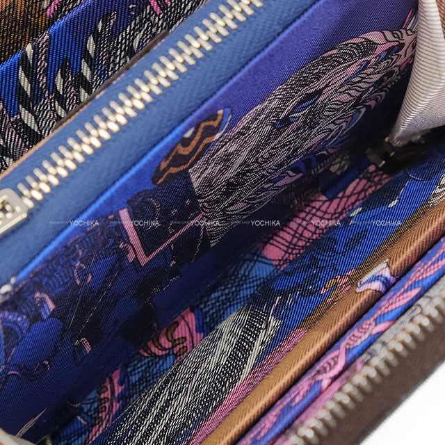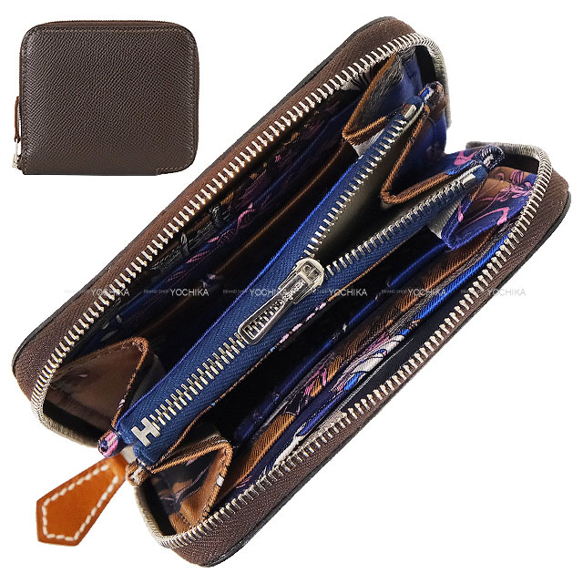 | HERMES Bi-fold wallet Azap Compact Della Cavalleria Favolosa Ebene/Bleu Saphir/Pink Veau Epsom/Silk/Veau Barenia Silver HW Stamp Z[EXCELLENT][Authentic] |
