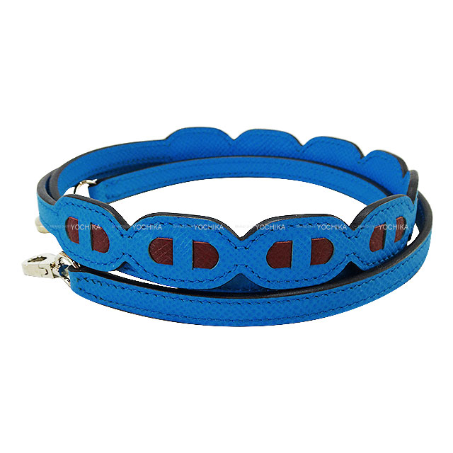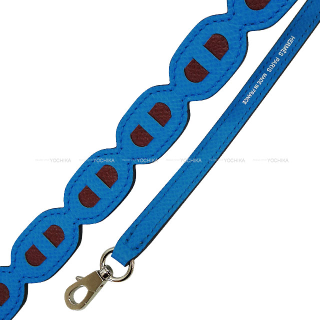| HERMES エルメス ショルダーストラップ バンドリエール マイヨン シェーヌダンクル ミニ専用 ブルーザンジバル/ルージュセリエ エプソン シルバー金具 Z刻印 新品未使用 |