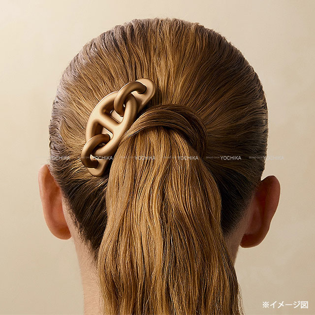 | Herms' Barrette Trs Mignon has arrived! Featuring a chain motif ring as a design accent, this compact French-made piece beautifully styles hair for any occasion, from everyday wear to formal events. Crafted from lightweight aluminum with just the right presence, the biscuit color effortlessly complements any hair color or fashion, making it a versatile accessory for all seasons. Don't miss this opportunity. |