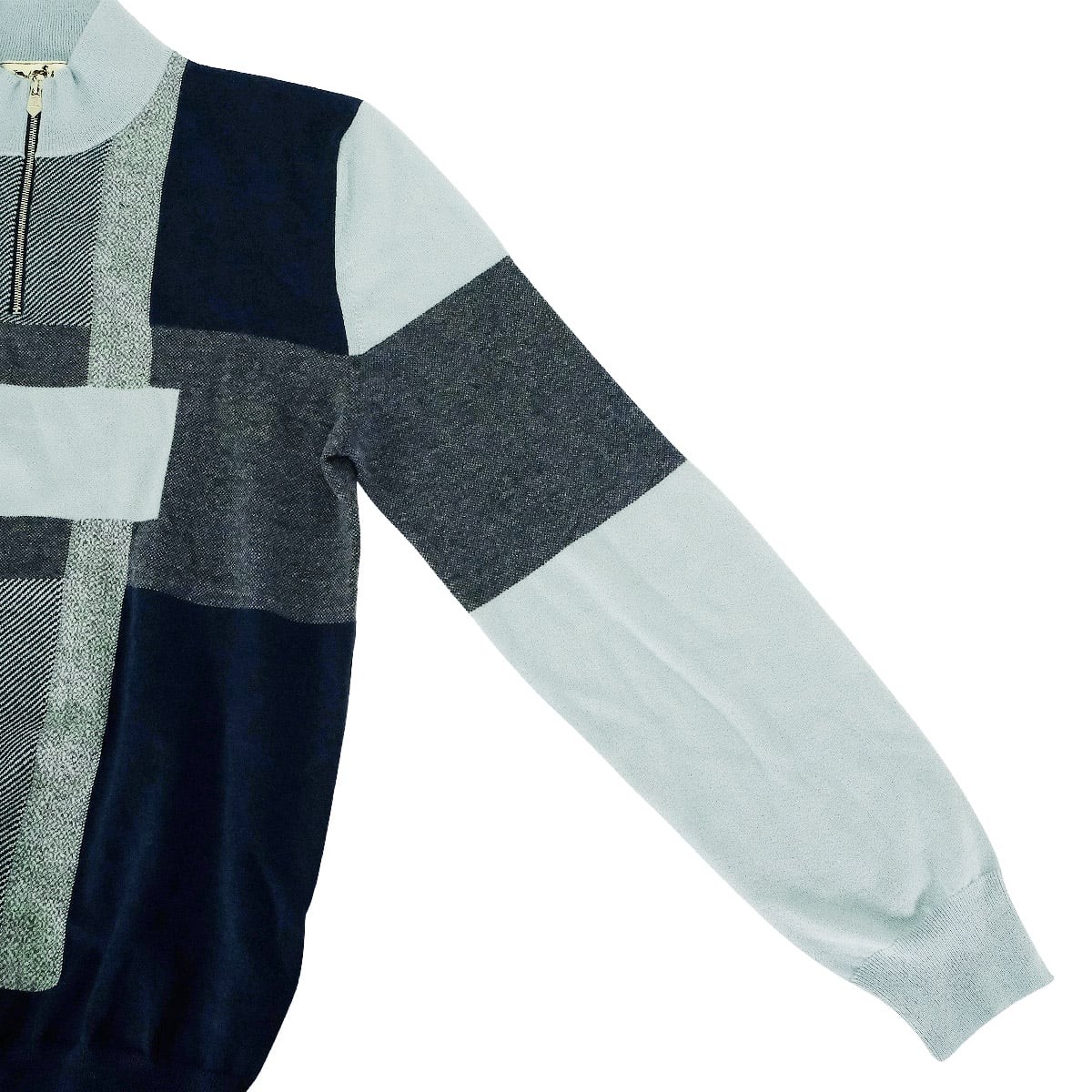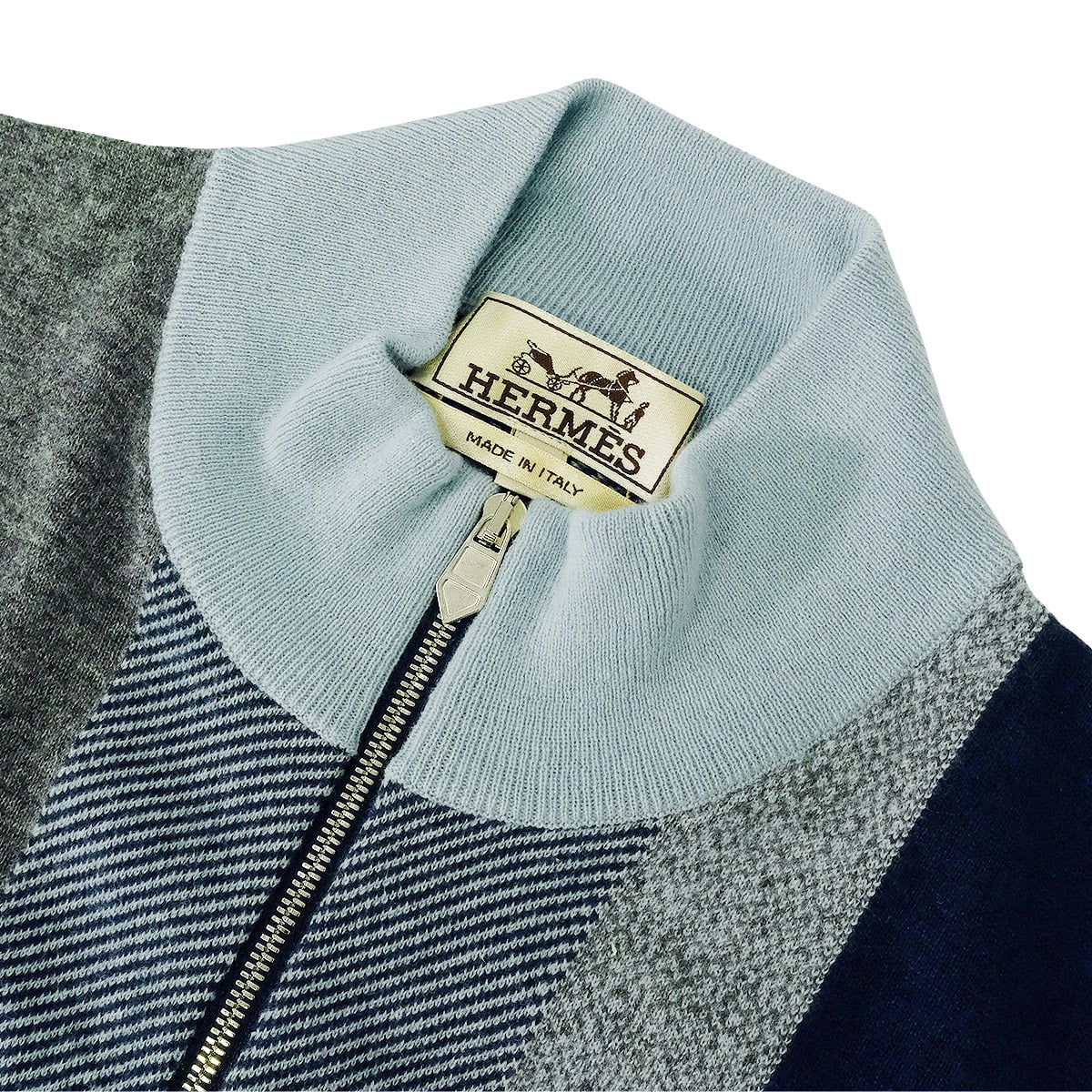 | HERMES Knit Calques en Mouvement Zip Blue/Grey/Navy Cashmere Silver HW[EXCELLENT][Authentic] |