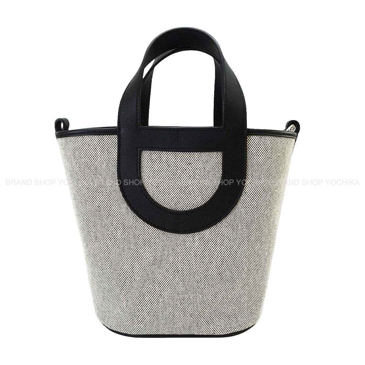 | HERMES Handbag In the Loop 18 Noir (Black)/Ecru Toile H/Veau Swift Silver HW Stamp W[EXCELLENT][Authentic] |