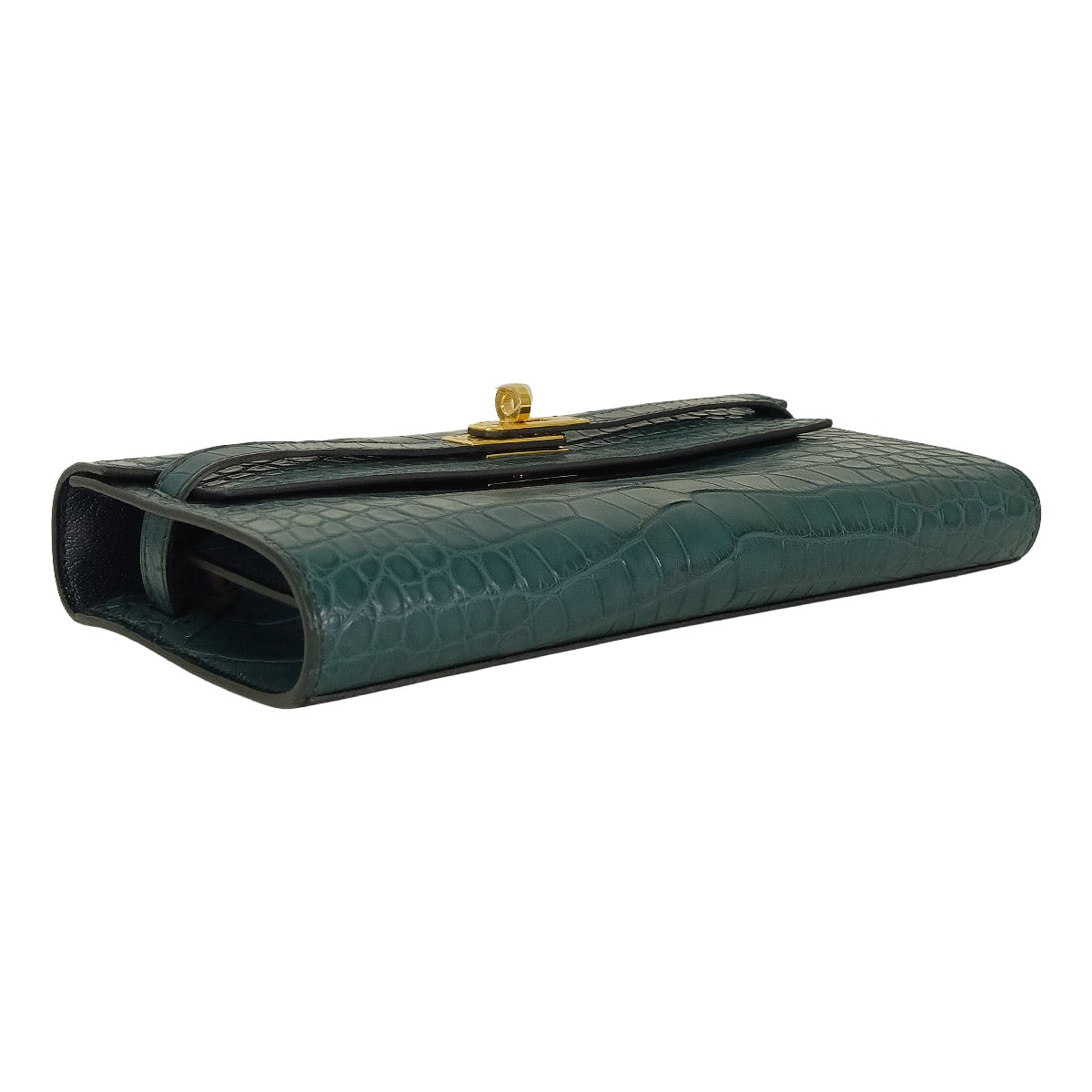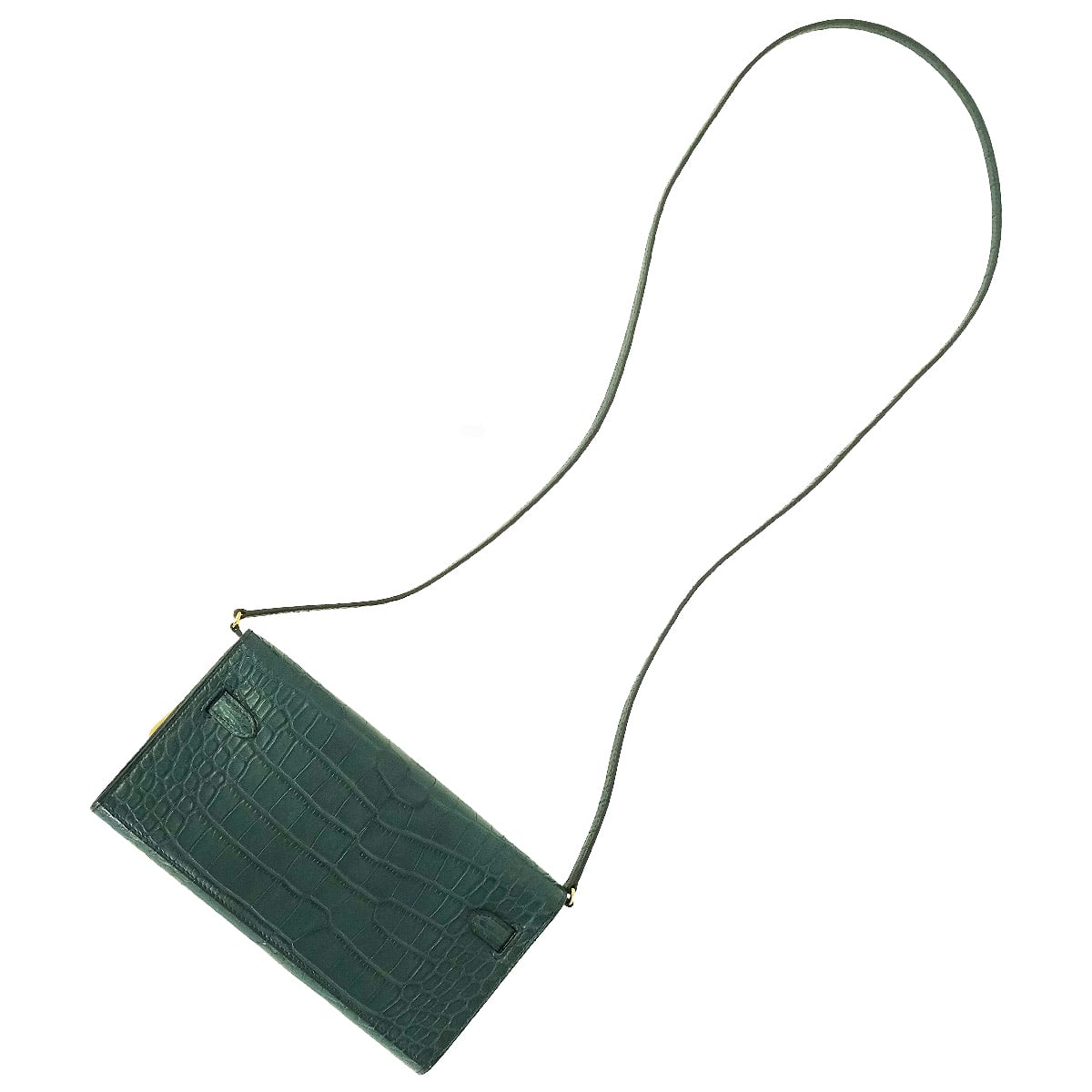 | HERMES long wallet Kelly Wallet Long To Go Vert Rousseau Crocodile Alligator Mat Gold HW Stamp U[EXCELLENT][Authentic] |
