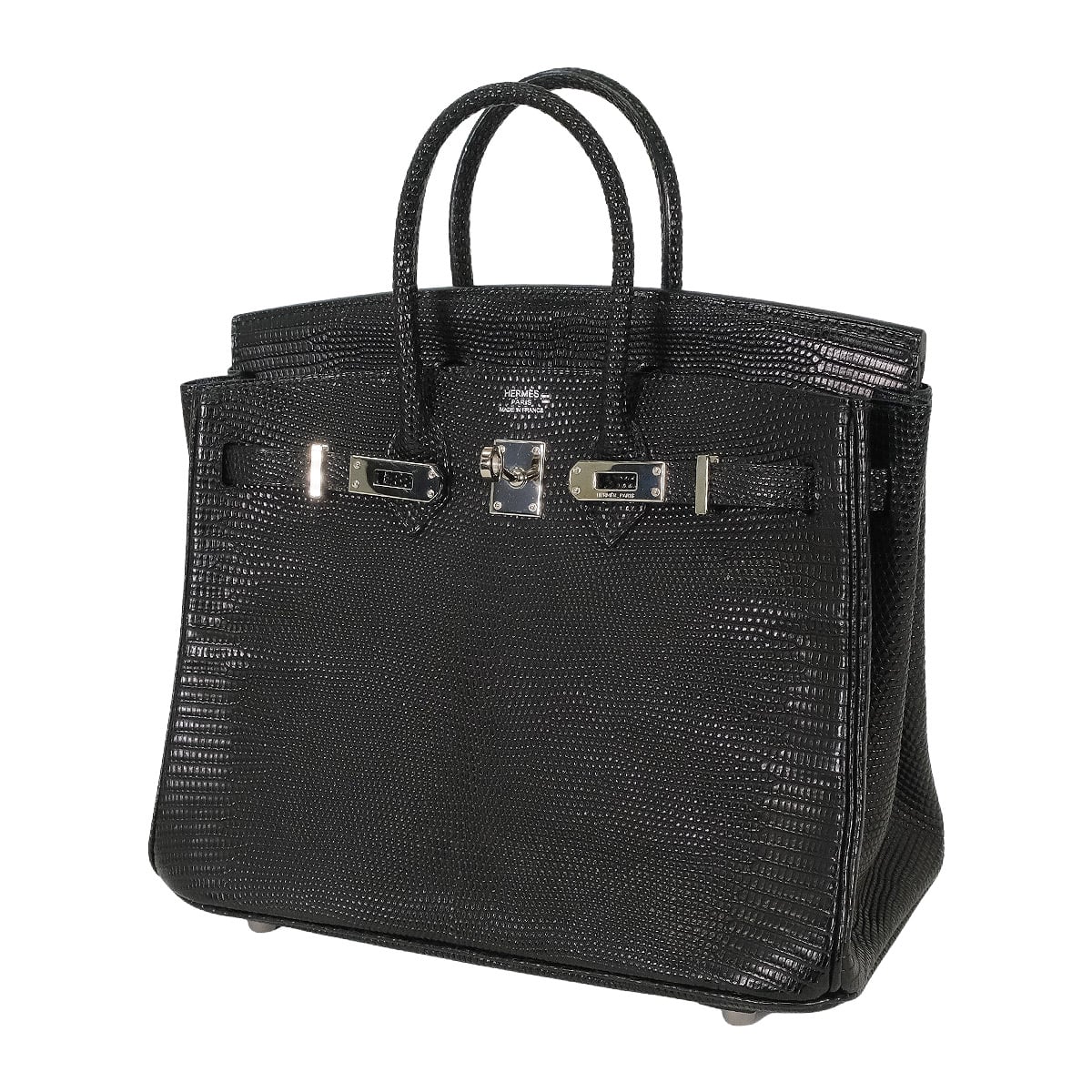 | HERMES エルメス ハンドバッグ バーキン25 黒 (ブラック) リザード シルバー金具 □K刻印 新品同様【中古】 |