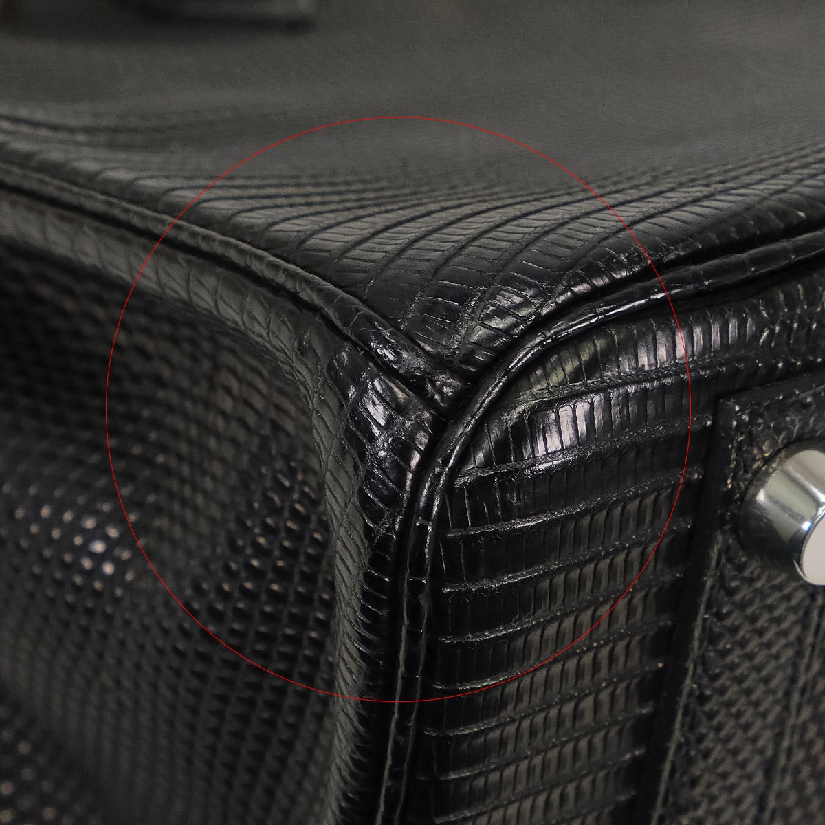 | [Pre-loved] HERMES Handbag Birkin25 Noir (Black) Lizard Silver HW Stamp □K[LIKE NEW][Authentic] |