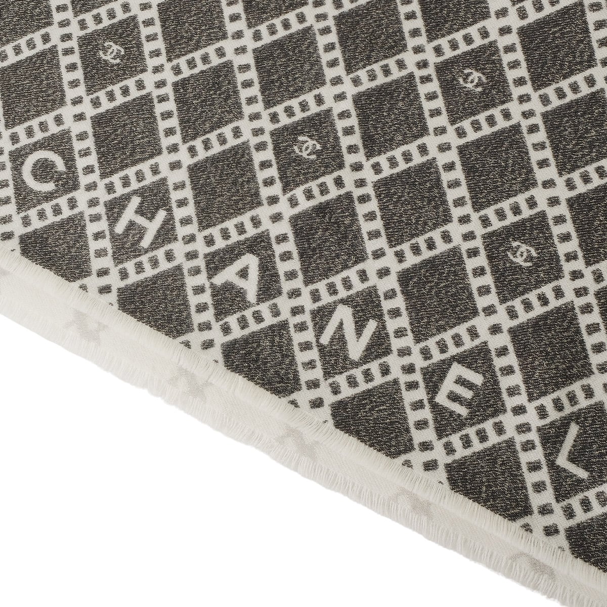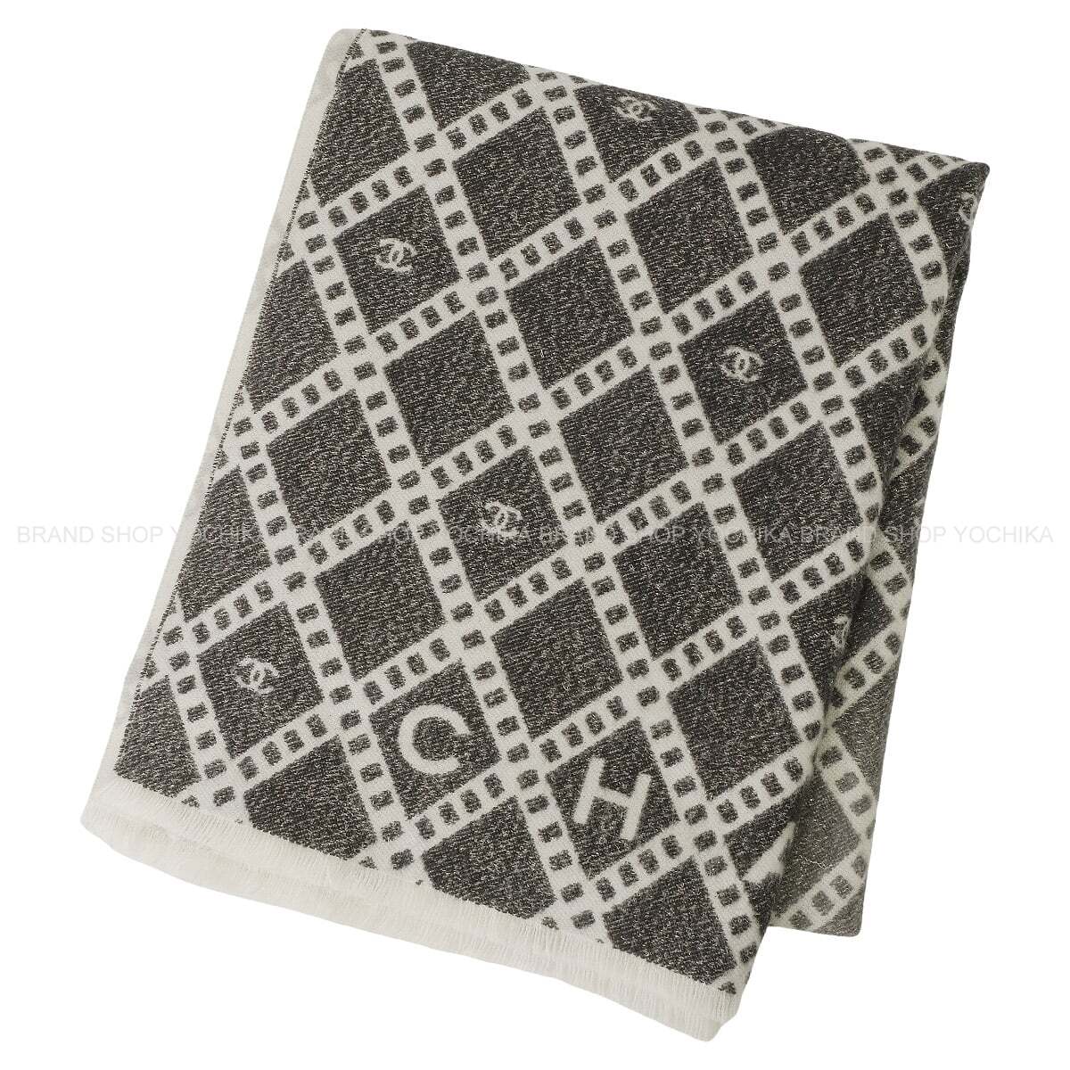 | 2024AW Limited CHANEL muffler Large Reversible Gradation Argyle Coco Mark lame Noir (Black)/Blanc (White)/Grey Cashmere/Silk/Polyester AAA497[BRAND NEW][Authentic] |