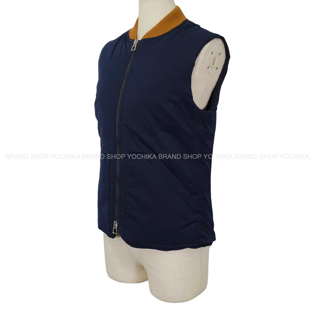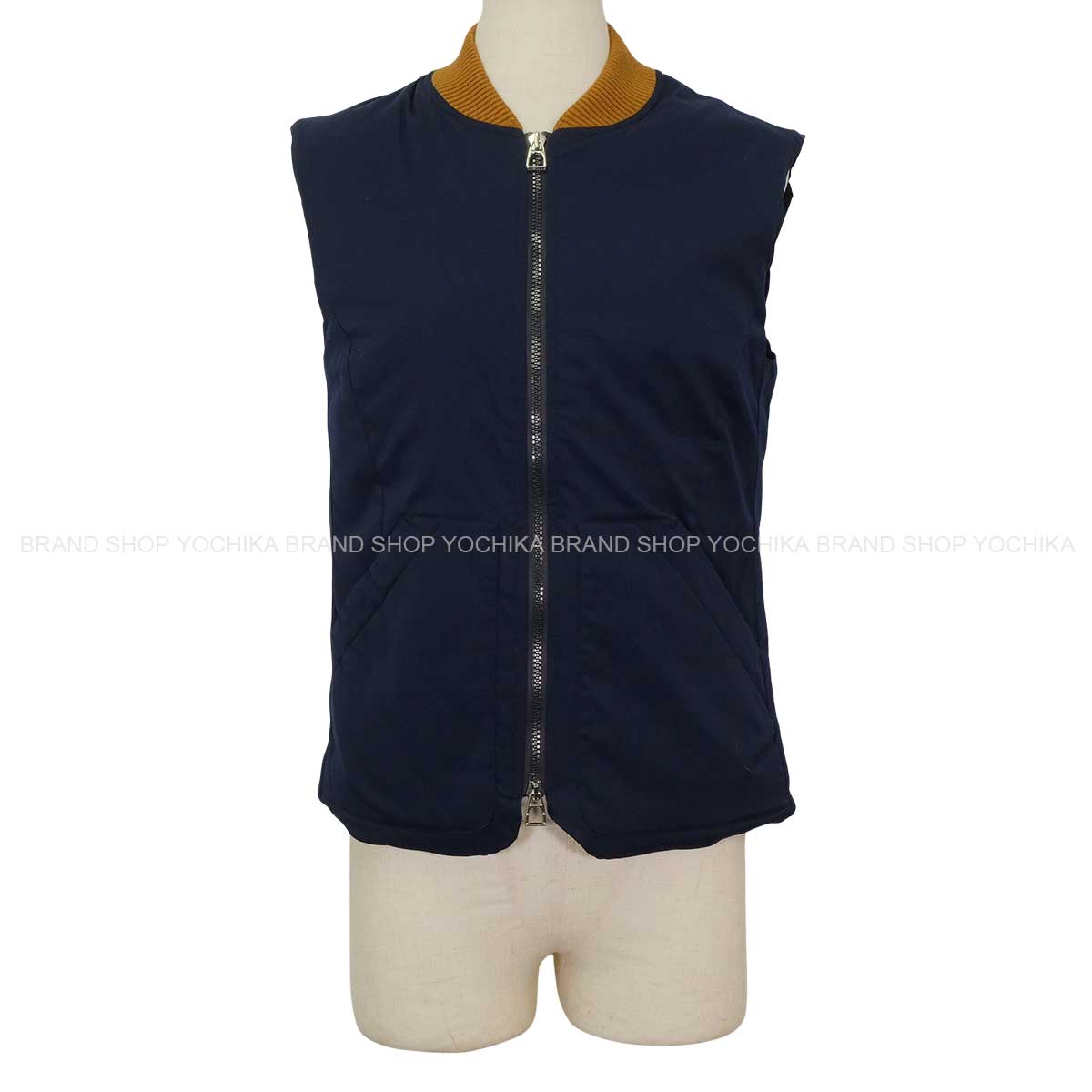 | HERMES エルメス ベスト ジレ トロッティング ネイビー/フォーヴ ナイロン/ポリウレタン ゴールド金具 H800682E 新品未使用 |