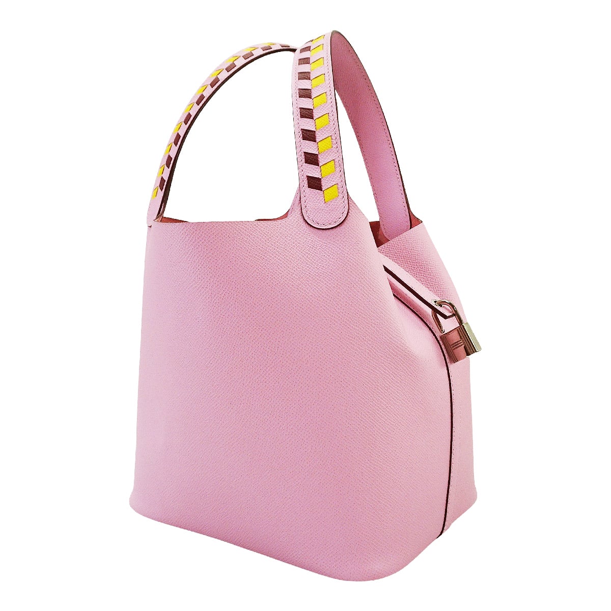 | [Pre-loved] HERMES Handbag Picotin Lock 22 MM Tressage De Cuir Mauve sylvestre/Jaune de Naples/Rouge H Veau Epsom Silver HW Stamp D[LIKE NEW][Authentic] |