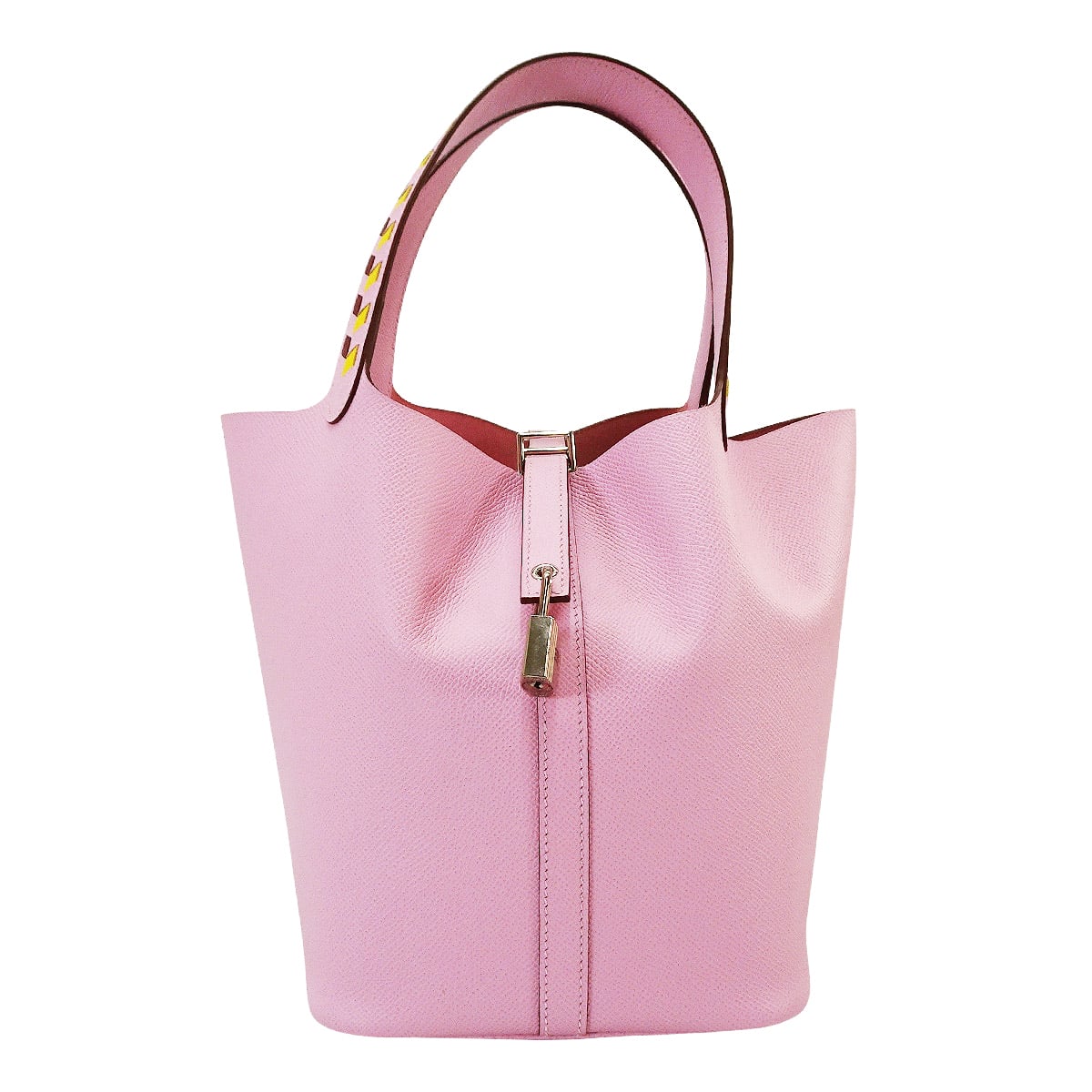 | HERMES エルメス ハンドバッグ ピコタンロック 22 MM トレサージュドゥ キュイール モーヴシルベストル/ジョーヌナプル (ジョーヌナポリ)/ルージュアッシュ エプソン シルバー金具 D刻印 新品同様【中古】 |