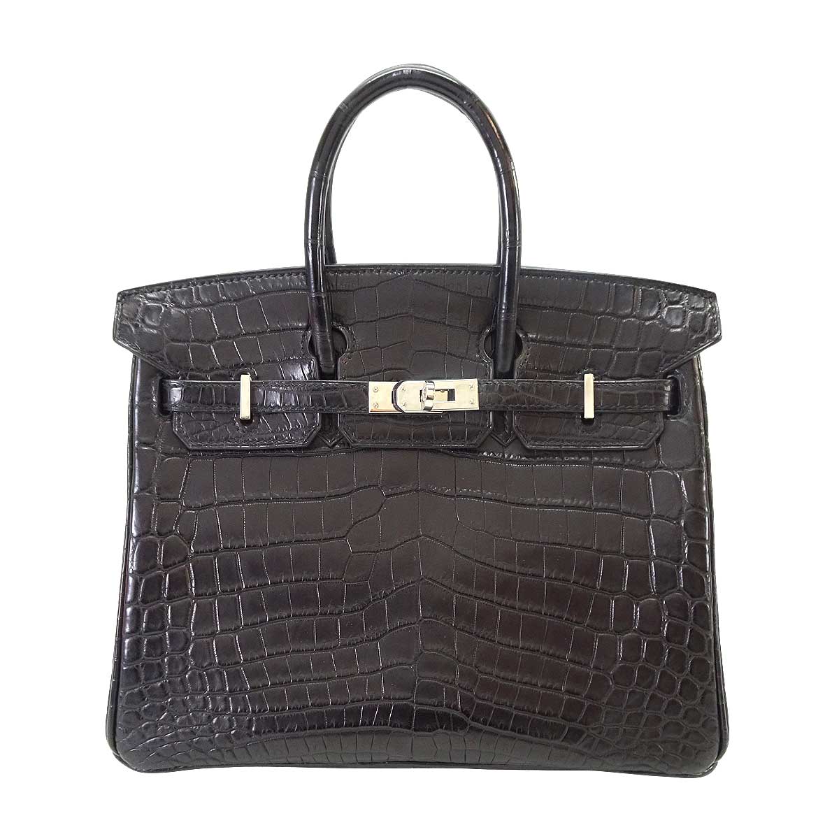 | HERMES エルメス ハンドバッグ バーキン25 黒 (ブラック) クロコダイルニロティカスマット シルバー金具 □O刻印 新品同様【中古】 |