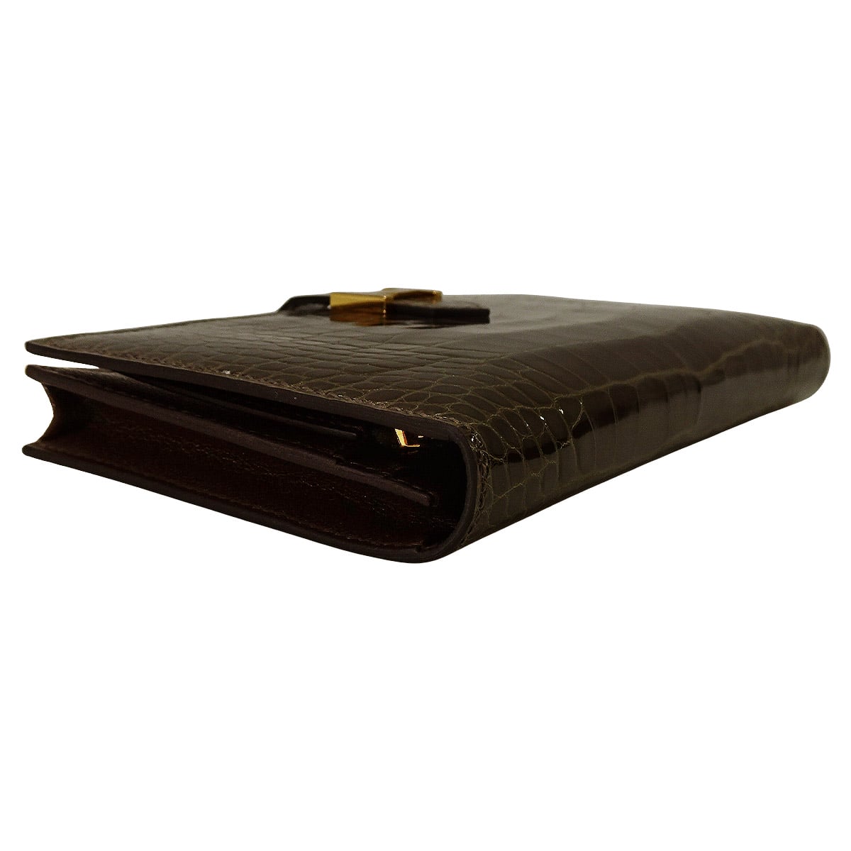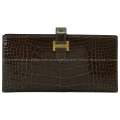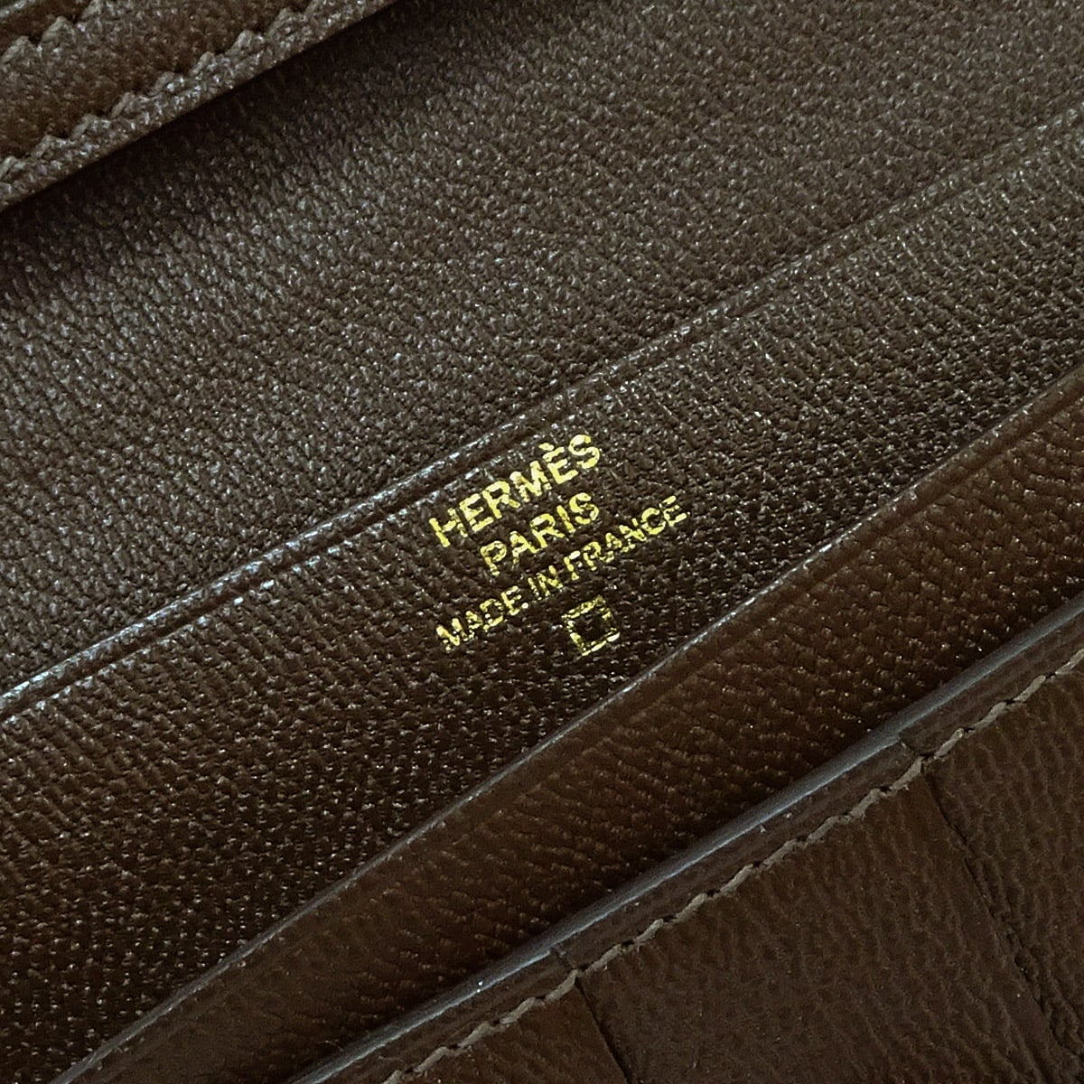| HERMES long wallet Bearn Soufflet Gris Elephant Crocodile Alligator Lisse Gold HW Stamp B[EXCELLENT][Authentic] |