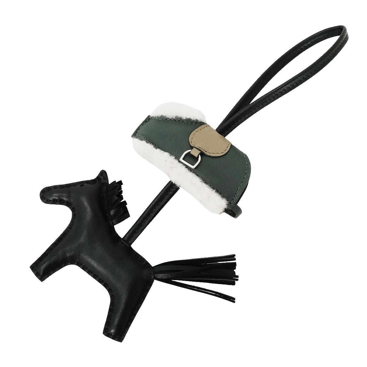 | HERMES bag charm Rodeo Robeo Plush PM Noir (Black)/Beige Marfa/Vert Mangrove Agneau Milo/Veau Swift/Mouton Silver HW[BRAND NEW][Authentic] |