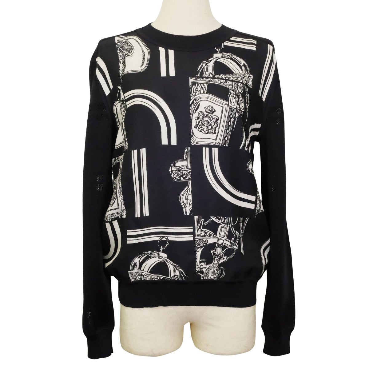 | HERMES Knit Long Sleeve Knit Twillaine Desordre Finesse Noir (Black) Silk/Nylon/Polyurethane 4E2838DQ[BRAND NEW][Authentic] |
