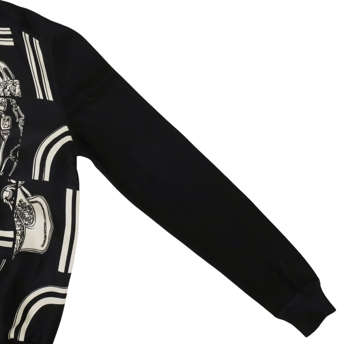 | The "Twillaine" represents the very essence of Herms, a masterful fusion of luxurious silk and fine knitwear.Using the jet-black knit as a canvas, this artistic piece features the striking "Desordre" printa modern, avant-garde reconstruction of traditional heritage motifs. The exquisite silk panels on the front and back emit an elegant luster, while the knit sections are meticulously blended with nylon and polyurethane.This combination preserves the refined grace of silk while adding excellent stretch and superior shape retention. Designed to fit the body gracefully, it ensures a sophisticated yet stress-free experience for effortless all-day wear. |