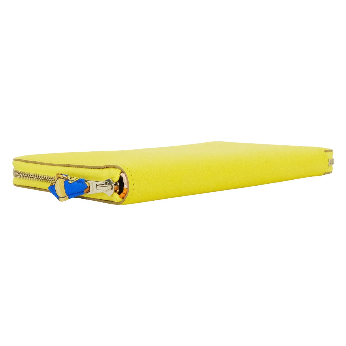 | This is the Hermes Azap Silk’In Long Wallet, a true brand icon. The exterior features the stunning and elegant 'Lime' yellow, one of the most eye-catching shades in the Hermes collection. The interior is lined with 100% silk featuring the timeless 'Collier de Chien' (Dog Collar) print, a heritage design dating back to the 1920s. The contrast between the uplifting, vibrant exterior and the sophisticated silk interior is breathtaking. Every time you open this wallet, you experience a perfect harmony of luxury and artistry. |