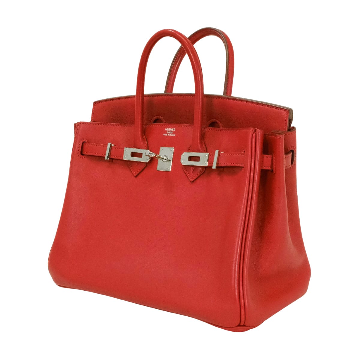 HERMES エルメス ハンドバッグ バーキン25 ヴァーミリオン (バーミリオン) スイフト シルバー金具 □R刻印 SAランク【中古】