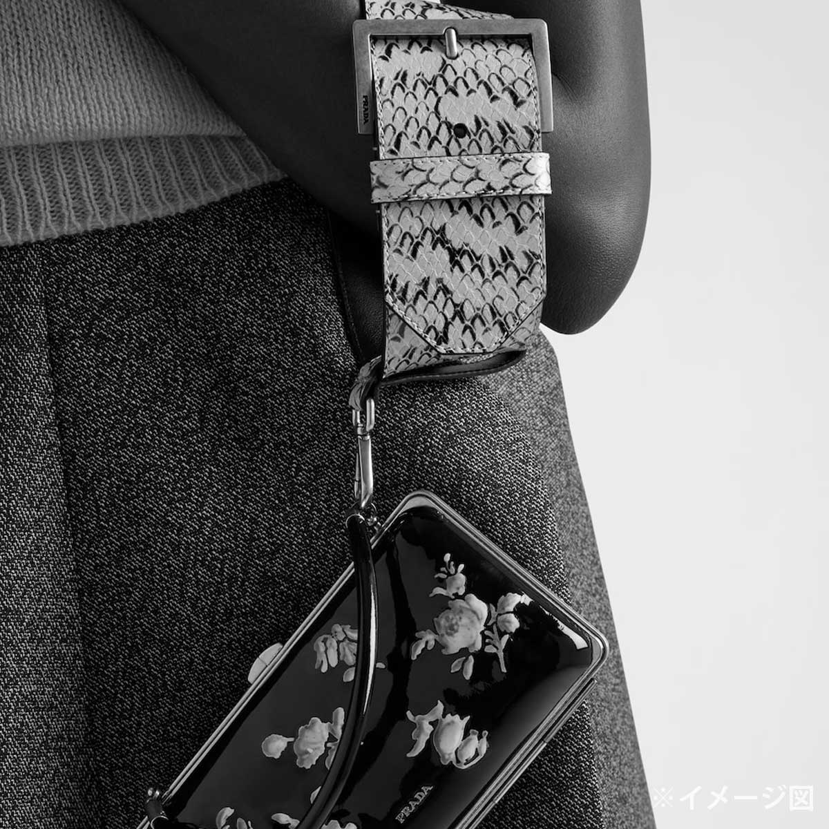 | プラダより、バッグの印象を自在に操る、洗練されたレザーリストストラップのご紹介です。上質なブラックのカウレザー(牛革)を使用し、使い込むほどに馴染む耐久性と高級感を兼ね備えています。最大の魅力は、重厚感のあるアンティークシルバー金具。あえて光沢を抑えたヴィンテージ風の質感が、プラダらしい都会的でエッジの効いたアクセントを添えてくれます。お手持ちのポーチに取り付けてリストレットとして活用したり、バッグのハンドルやジップにチャームとして添えたりと、使い方は自由自在。シンプルなバッグも、これ一つで瞬時にモダンなスタイルへとアップデートされます。 |