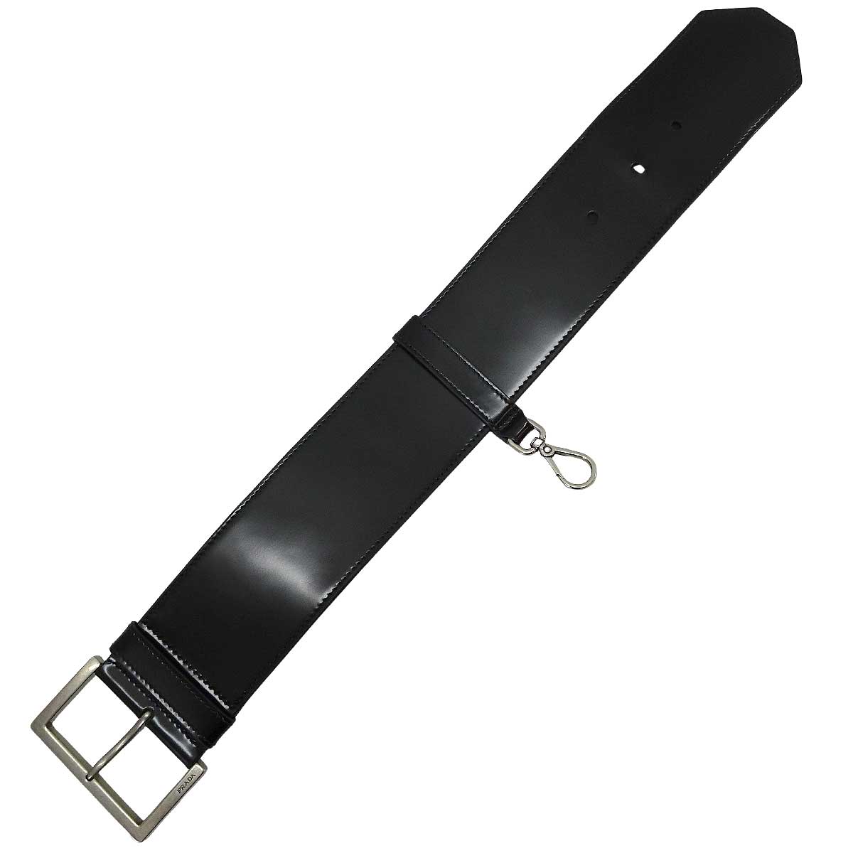 | PRADA プラダ バッグチャーム バッグアクセサリー レザー リスト ストラップ 黒 (ブラック) カウレザー アンティークシルバー金具 1TW008 新品未使用 |