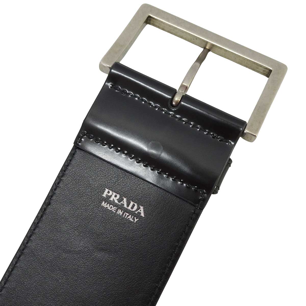 | PRADA bag charm Bag Accessory Leather Wrist Strap Noir (Black) Cowhide Leather Antique Silver HW 1TW008[EXCELLENT][Authentic] |