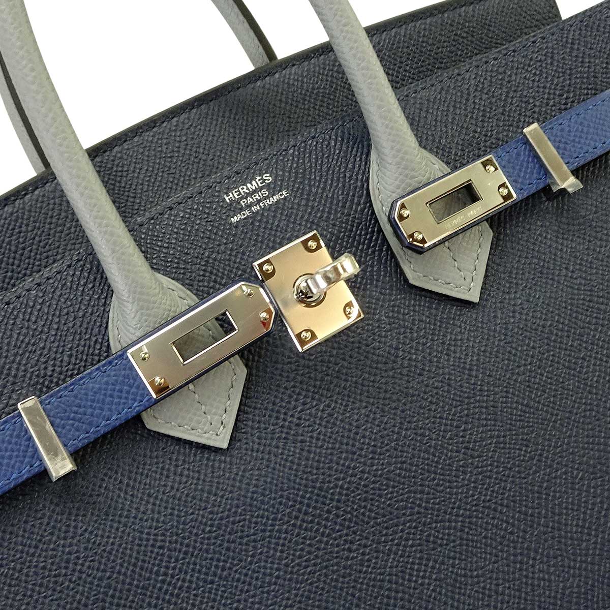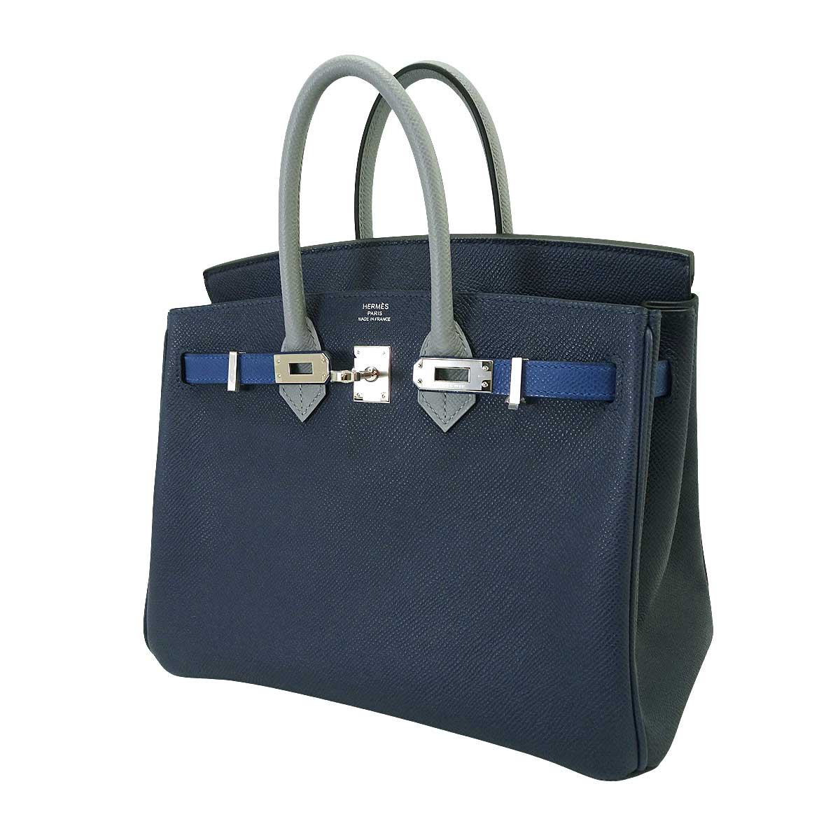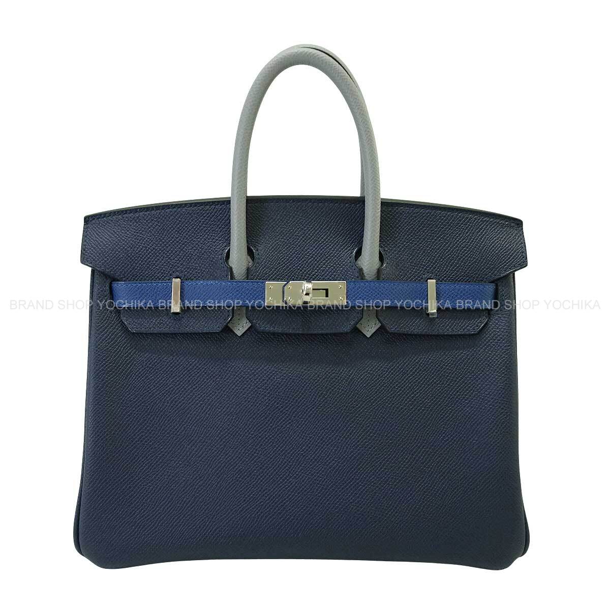 HERMES エルメス ハンドバッグ バーキン25 トリコロール ブルーアビス/ブルータイ/グリパンタン エプソン シルバー金具 K刻印 新品