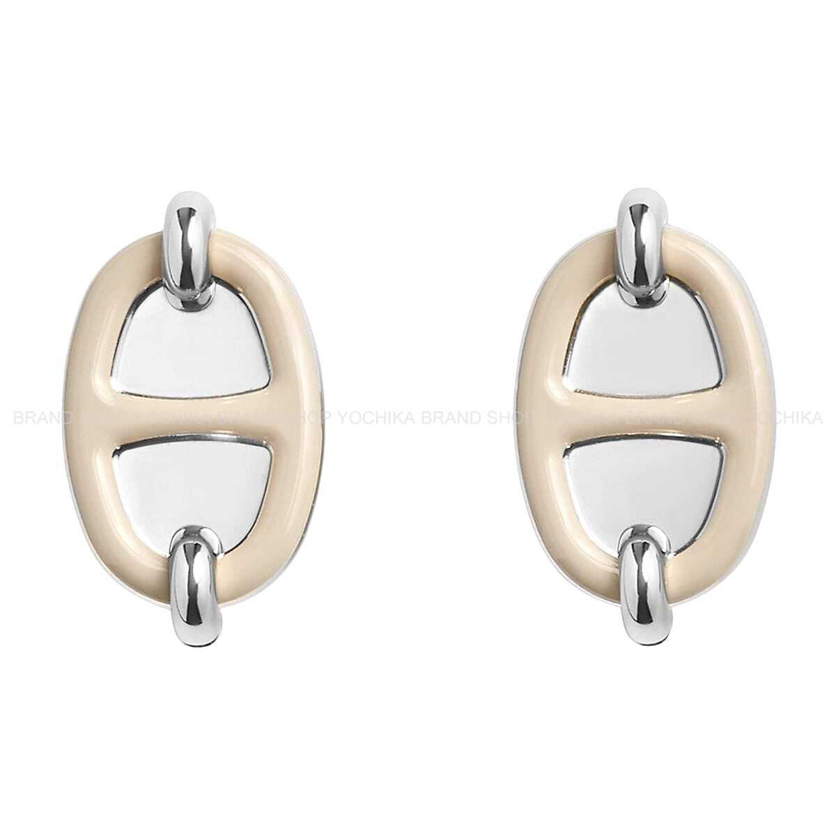 | HERMES pierced earring Mini Maillon Earring Marron Grace Silver Plated/lacquer[BRAND NEW][Authentic] |