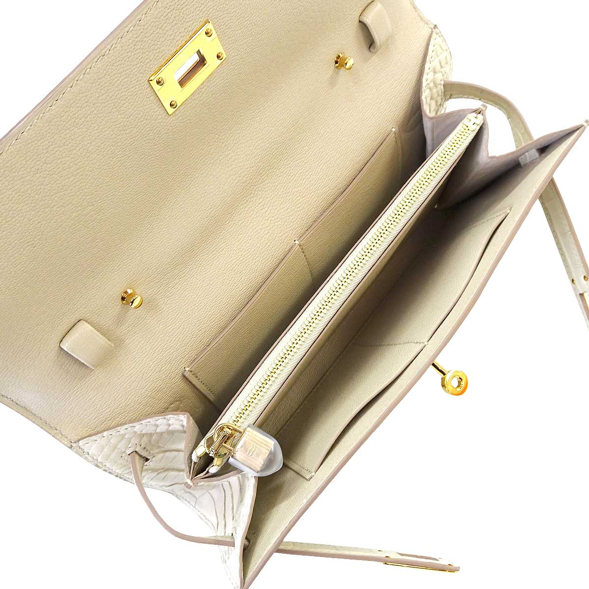 | HERMES long wallet Kelly Wallet Long To Go Beton Crocodile Alligator Mat Gold HW Stamp K[EXCELLENT][Authentic] |