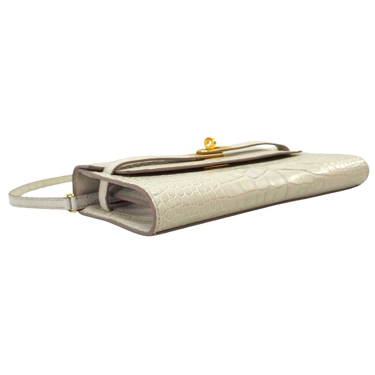 | Introducing the iconic Kelly Wallet Long To Go, an elegant evolution of the classic Kelly design.Crafted from rare Matte Alligator in the refined pale gray "Beton," it is perfectly accented by luxurious gold hardware.The removable strap offers seamless versatility, transitioning from a sophisticated long wallet to a chic crossbody bag.Elevate your style from day to night with this timeless masterpiecedon’t miss this rare opportunity. |