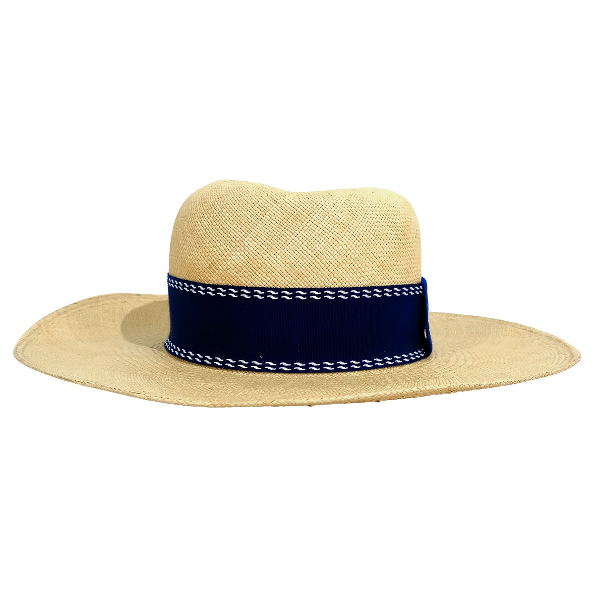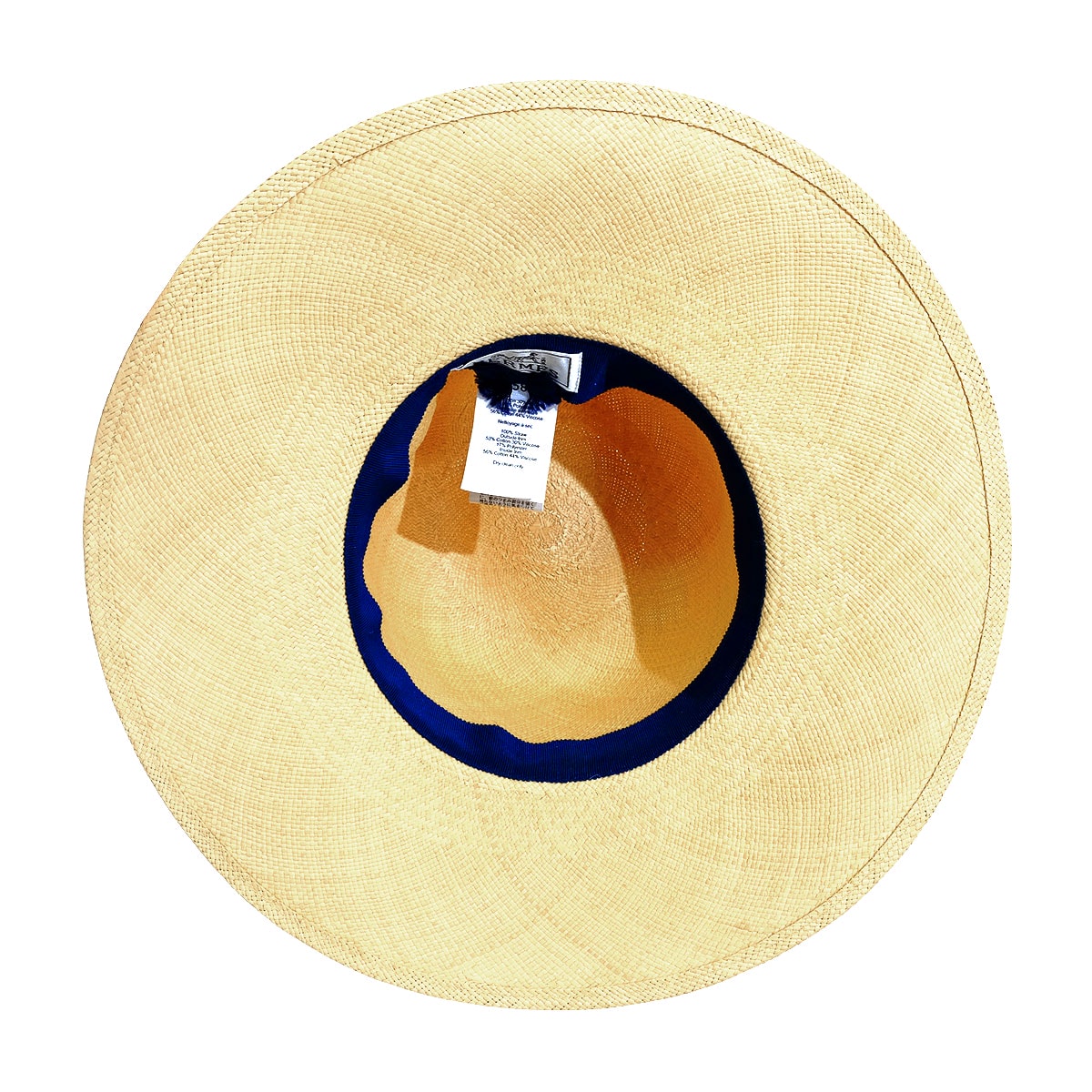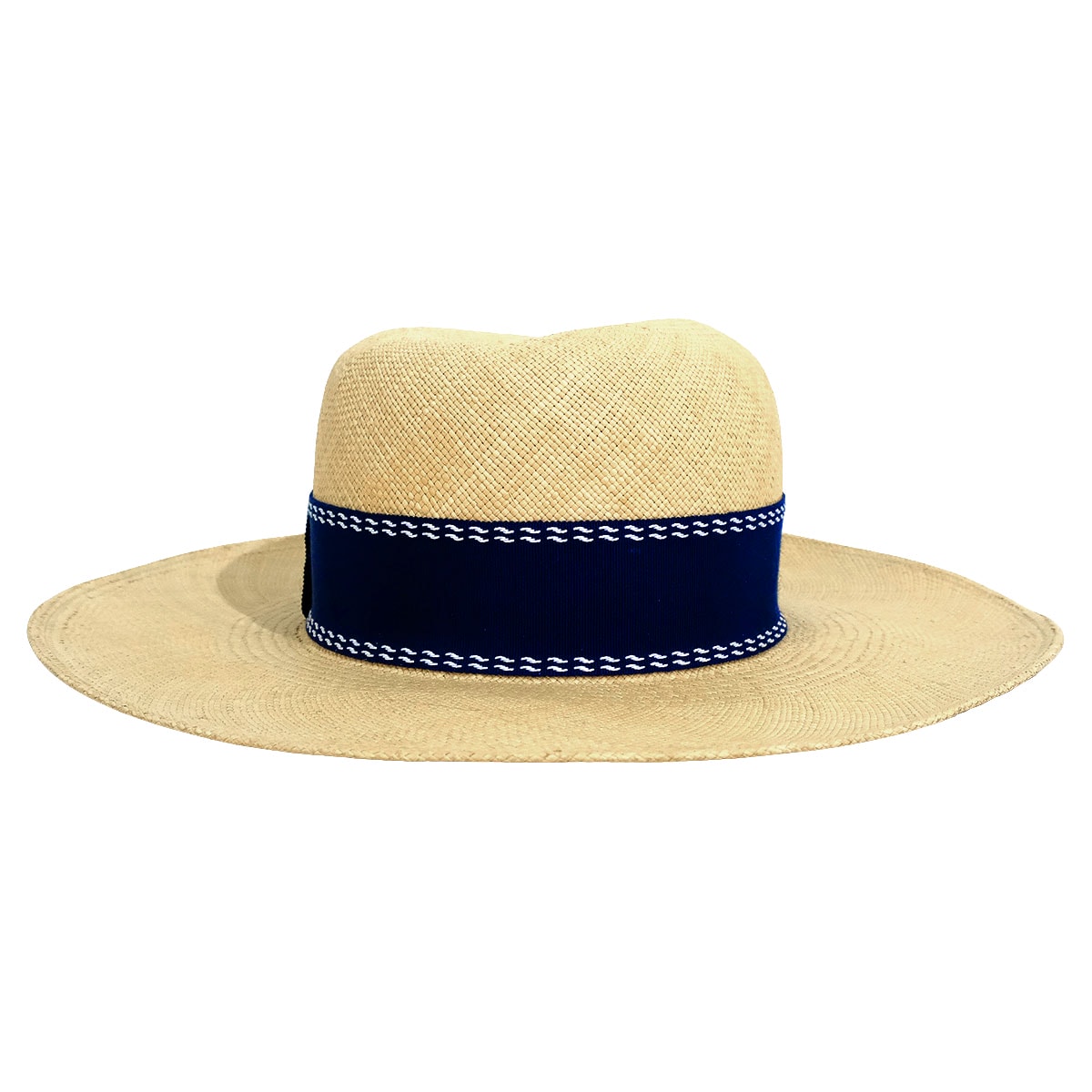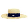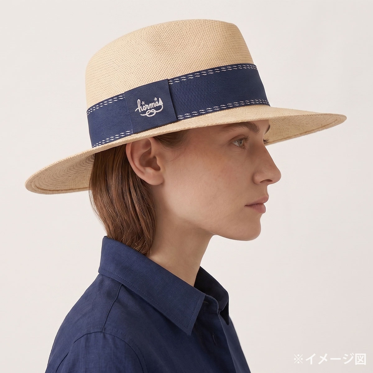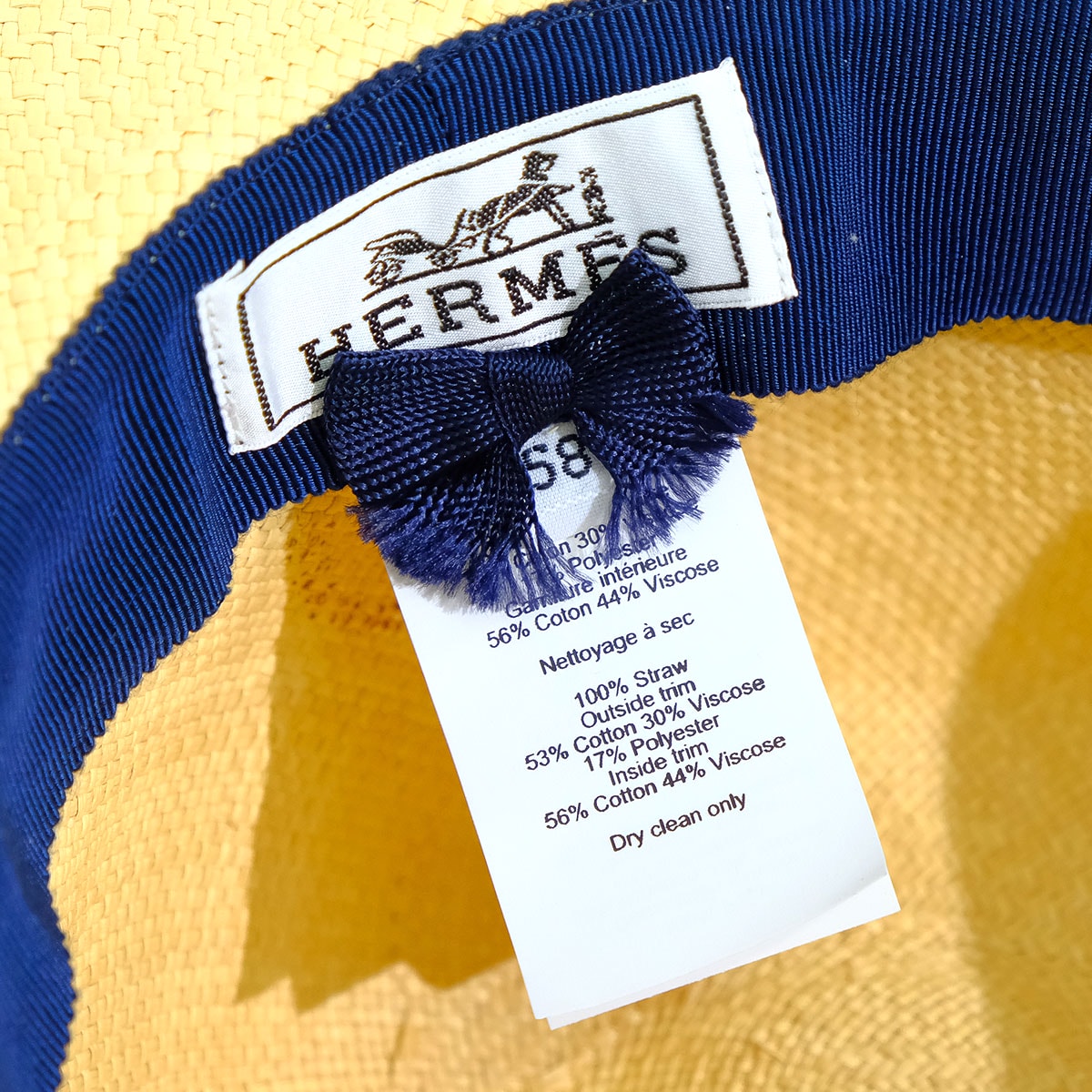 | [Pre-loved] HERMES Straw Hat Trinidad Logo Embroidered Ribbon #58 Beige/Navy Straw/Cotton/Rayon/Polyester[LIKE NEW][Authentic] |