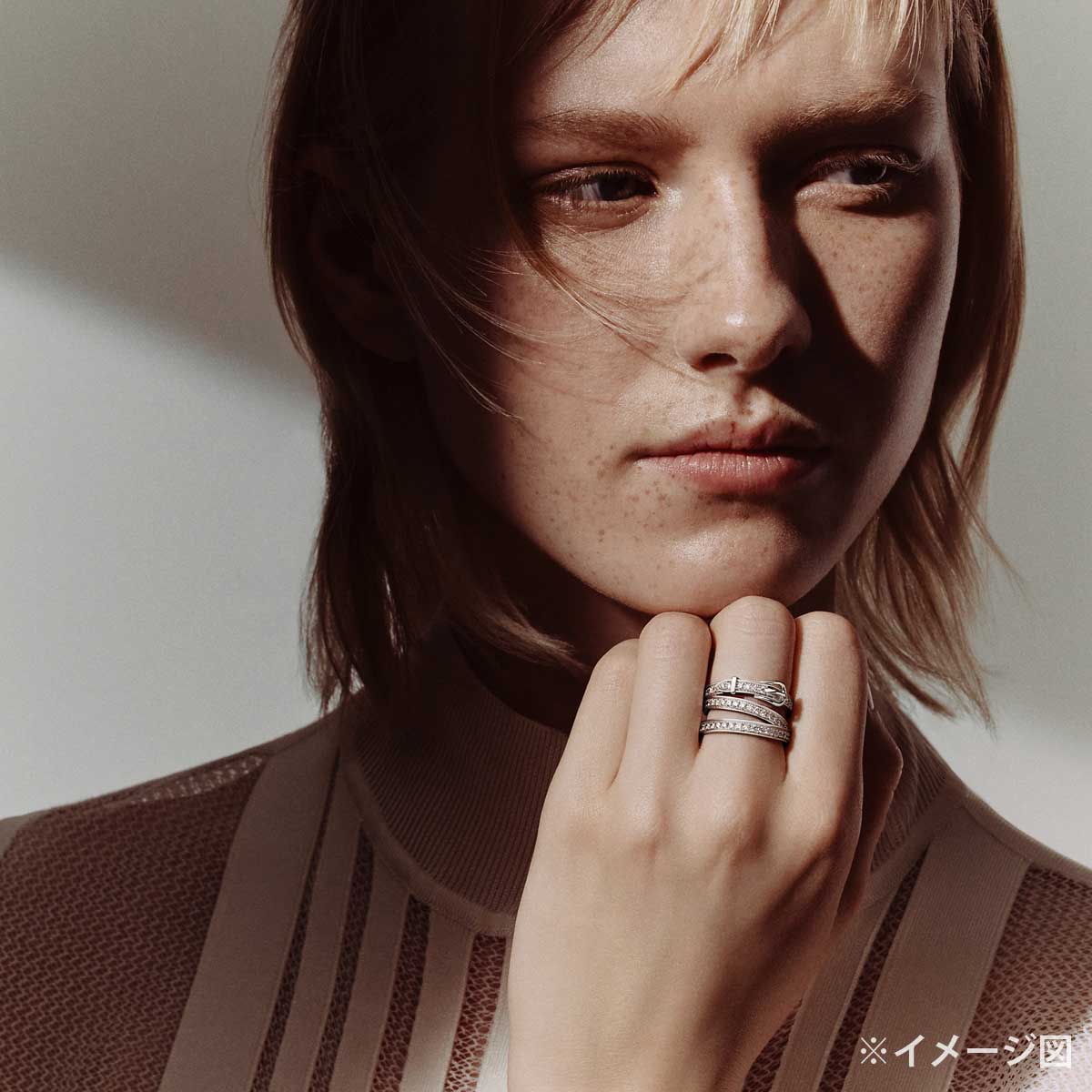 | エルメスのルーツである馬具の世界観を、現代的なジュエリーへと昇華させた「エトリヴィエール」リング。本品は、圧倒的なボリュームを誇るGMサイズ。武骨なまでの造形美に、ハイジュエリーの気品が加わったこのコントラストは、まさに大人のための贅沢と言えます。存在感のある太めのバンドでありながら、エルメス独自の設計により指馴染みが良く、手元をスマートかつ華やかに演出します。カジュアルな装いを格上げするアクセントとしてはもちろん、特別な日の装いにも引けを取らない逸品です。自分への特別な記念に、あるいは大切な方への一生もののギフトとして、自信を持っておすすめいたします。 |