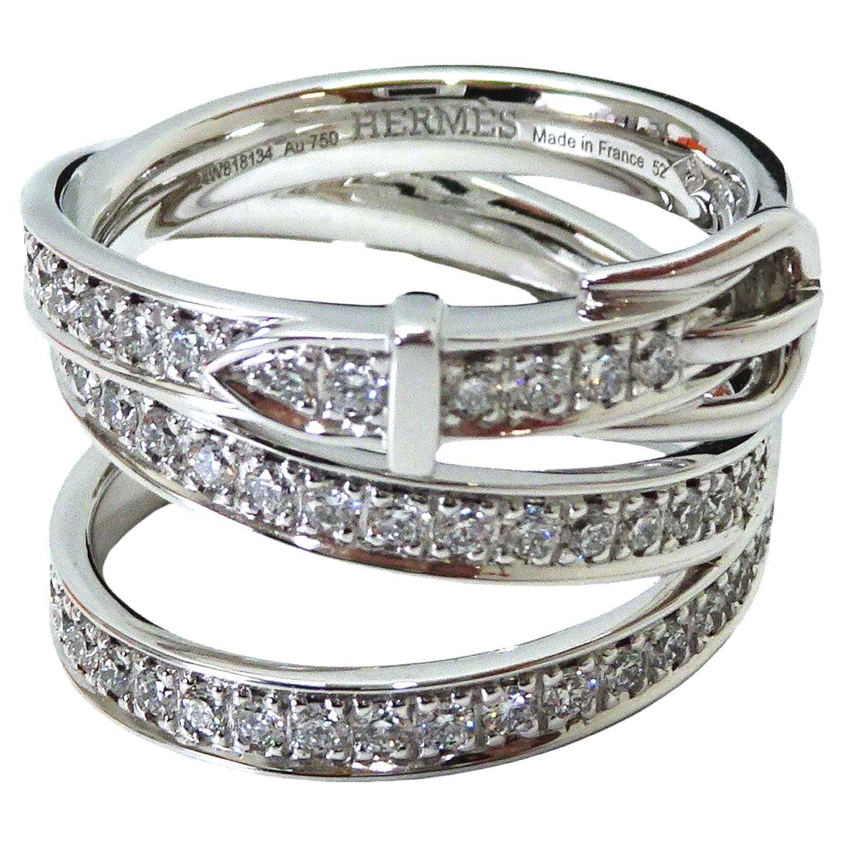 | HERMES ring Etriviere GM Silver K18WG/Diamond #52 H124606B[EXCELLENT][Authentic] |
