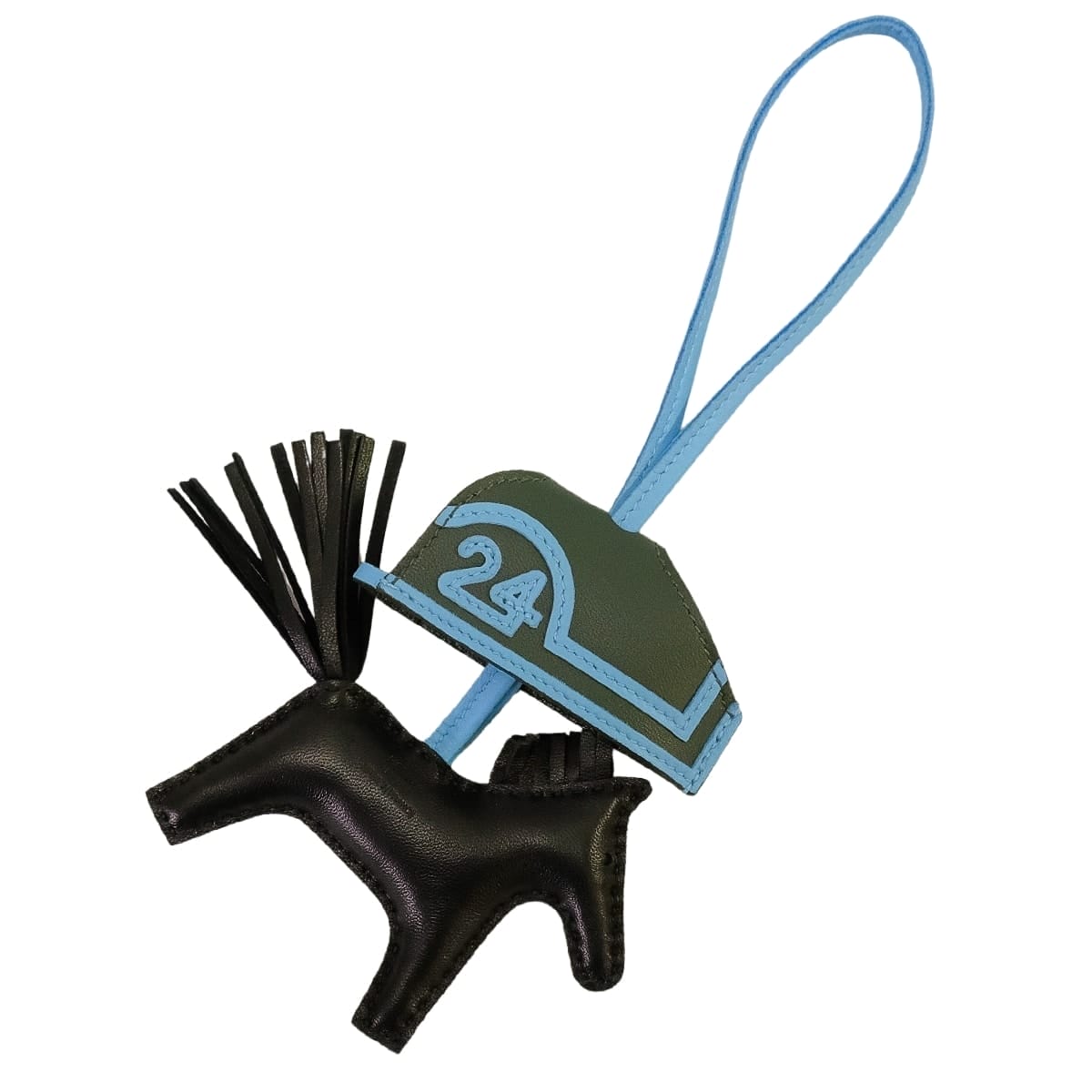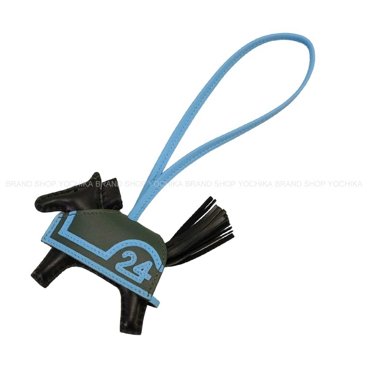 | HERMES エルメス バッグチャーム ロデオ ロベオ 24 PM 黒 (ブラック)/セレステ/ヴェールマングローブ アニョーミロ(ラム)/スイフト K刻印 新品 |